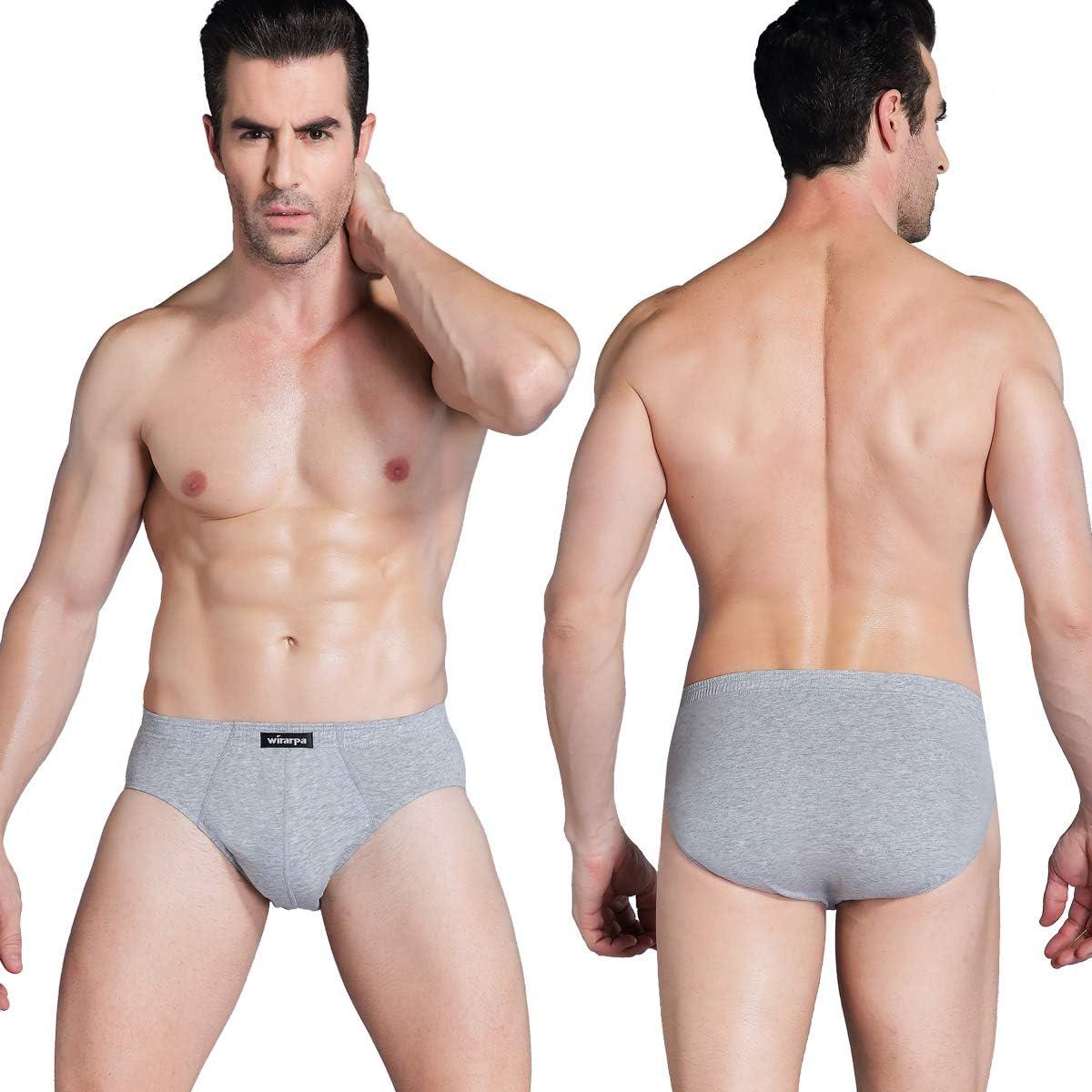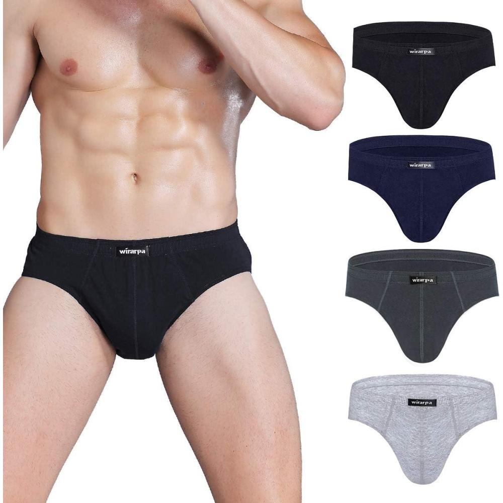 wirarpa Men’s 100 Cotton Briefs Underwear No Fly Covered Waistband 4 Pack(Black/Dark Blue/Dark Grey/Heather Grey)