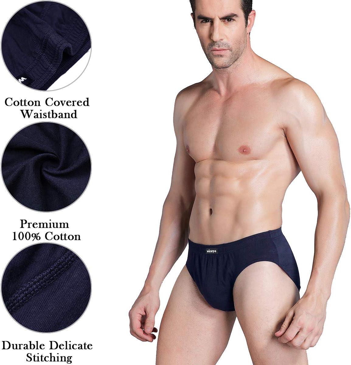 wirarpa Men’s 100 Cotton Briefs Underwear No Fly Covered Waistband 4 Pack(Black-4p)
