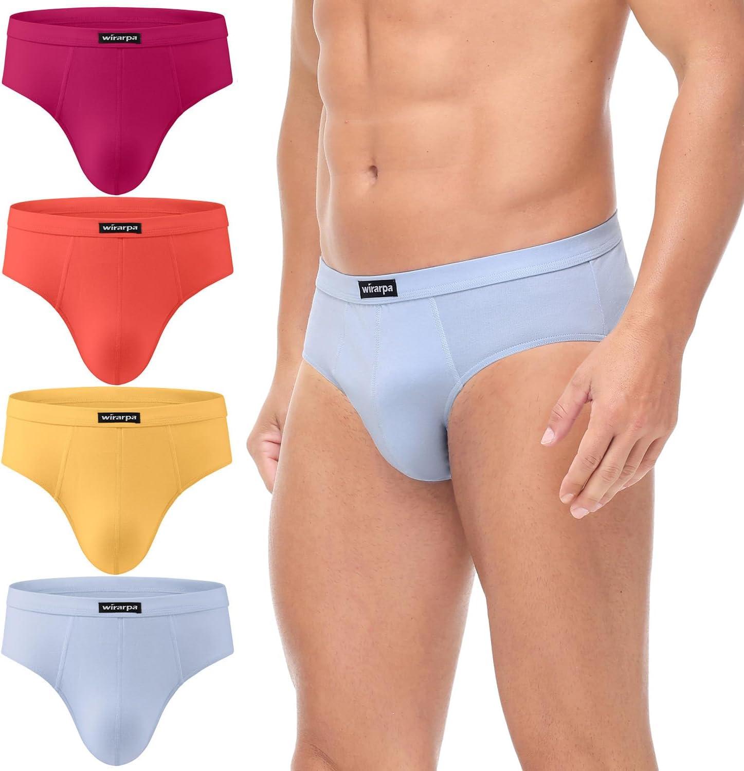 wirarpa Men’s 100 Cotton Briefs Underwear No Fly Covered Waistband 4 Pack(Red Orange Yellow Blue)