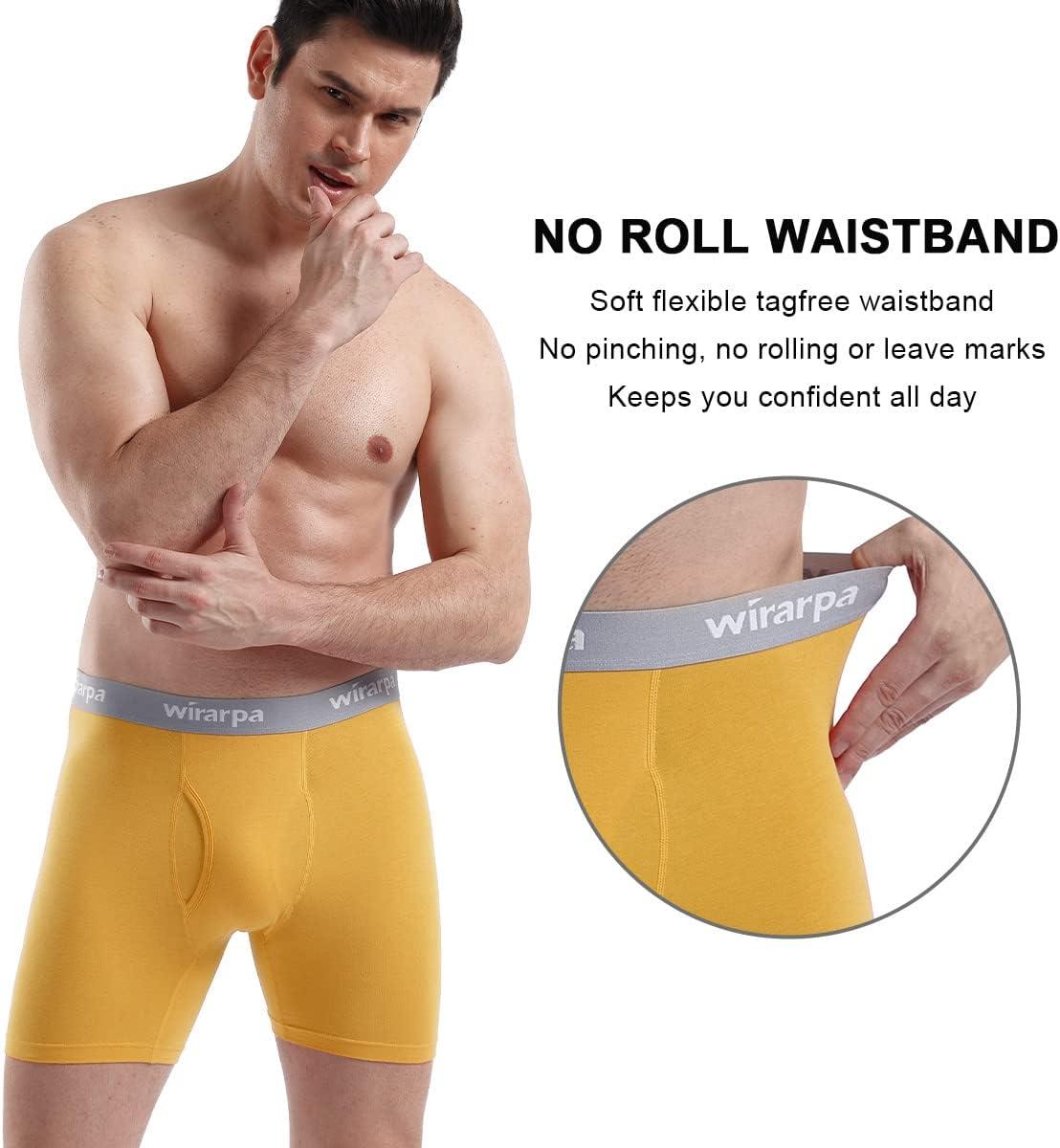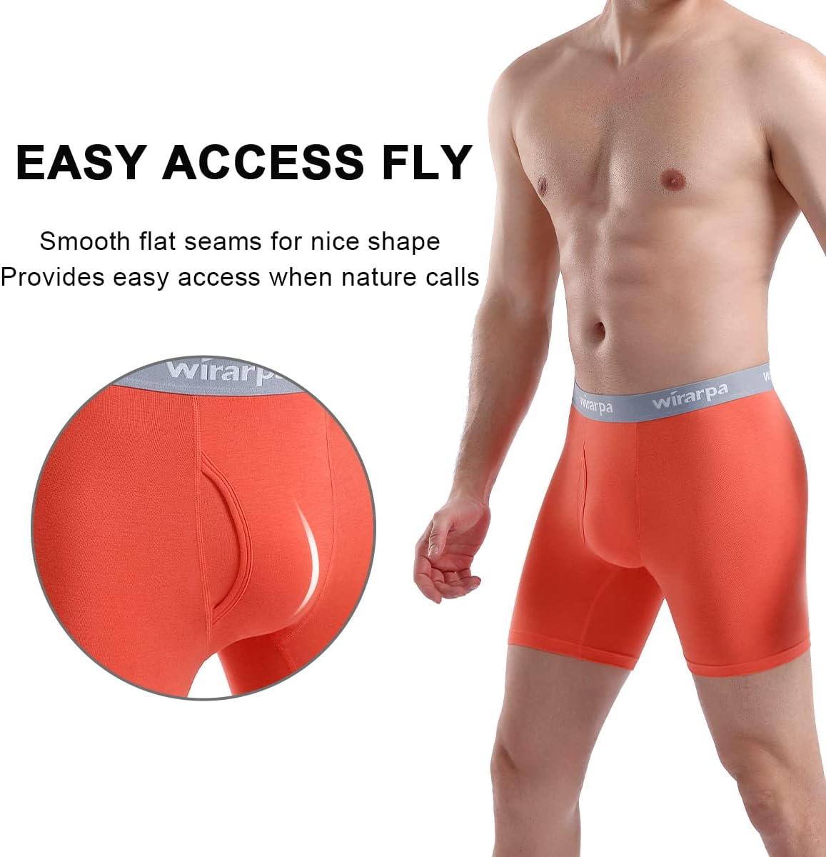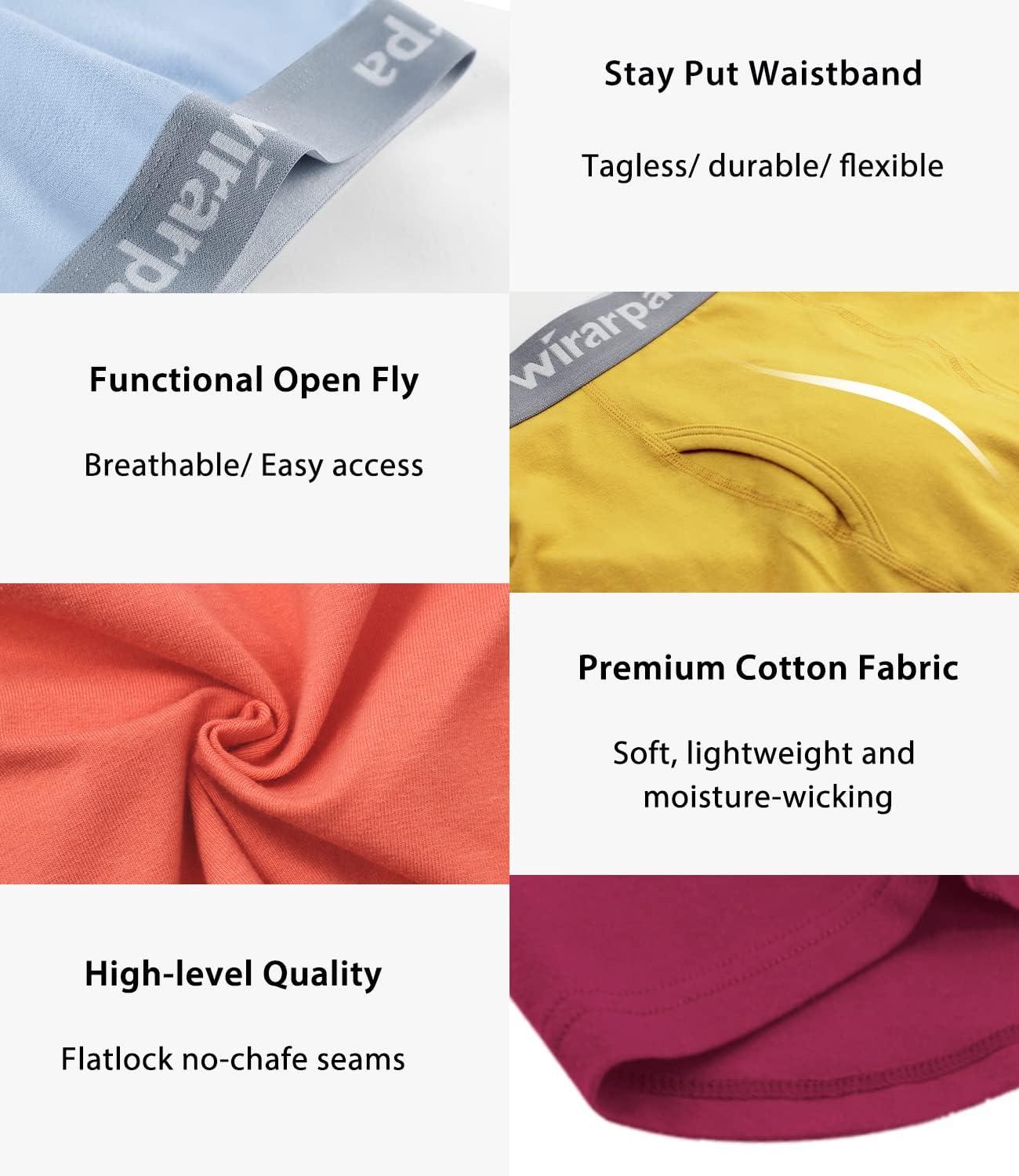 wirarpa Men’s Boxer Briefs Cotton Stretch Underwear Open Fly Tagless Underpants Regular Leg 4 Pack(Plum Red/Orange/Yellow/Airy Blue)