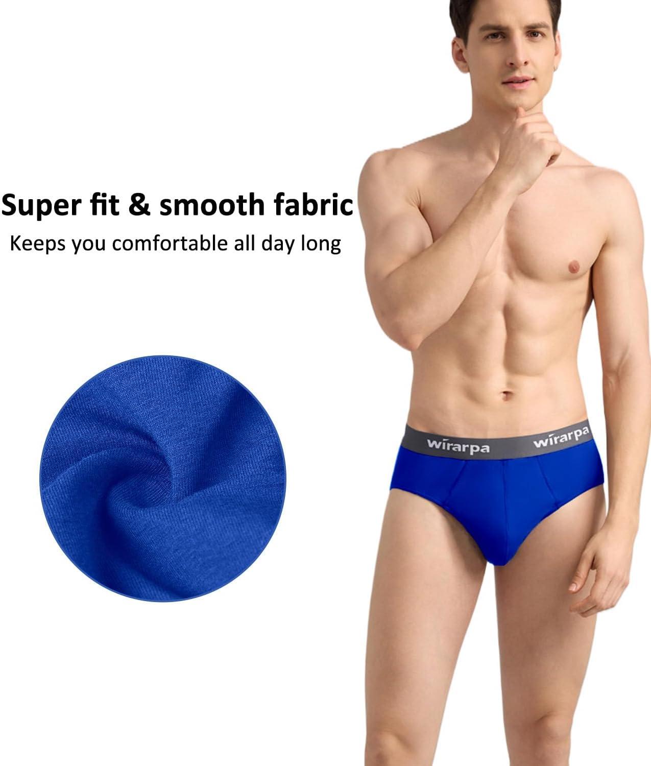 wirarpa Men’s Cotton Stretch Underwear Support Briefs Wide Waistband Multipack(Black/Navy/Dark Grey/Red)