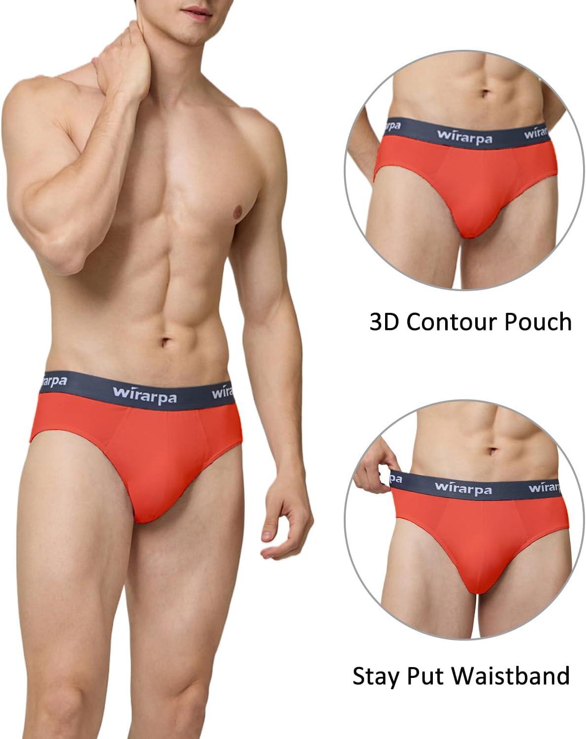 wirarpa Men’s Cotton Stretch Underwear Support Briefs Wide Waistband Multipack(Red/Orange/Yellow/Blue)