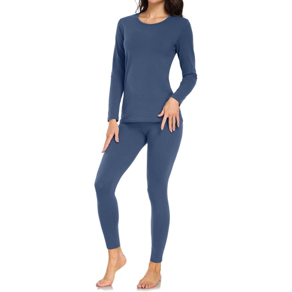 wirarpa Women’s Cotton Thermal Underwear Set Lightweight Long Johns Base Layer Pajama Set for Women Top Bottom(Coastal Fjord Blue)