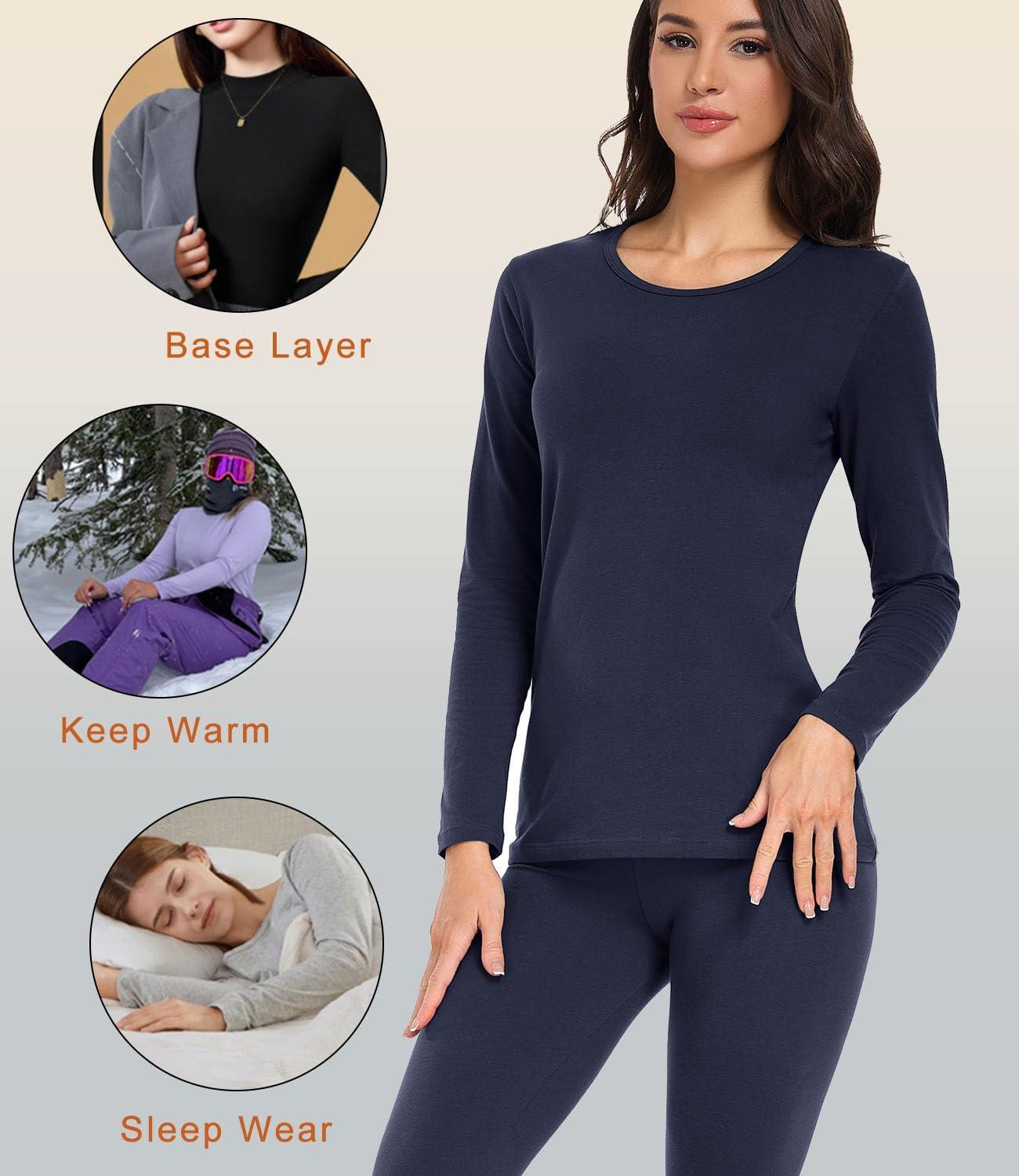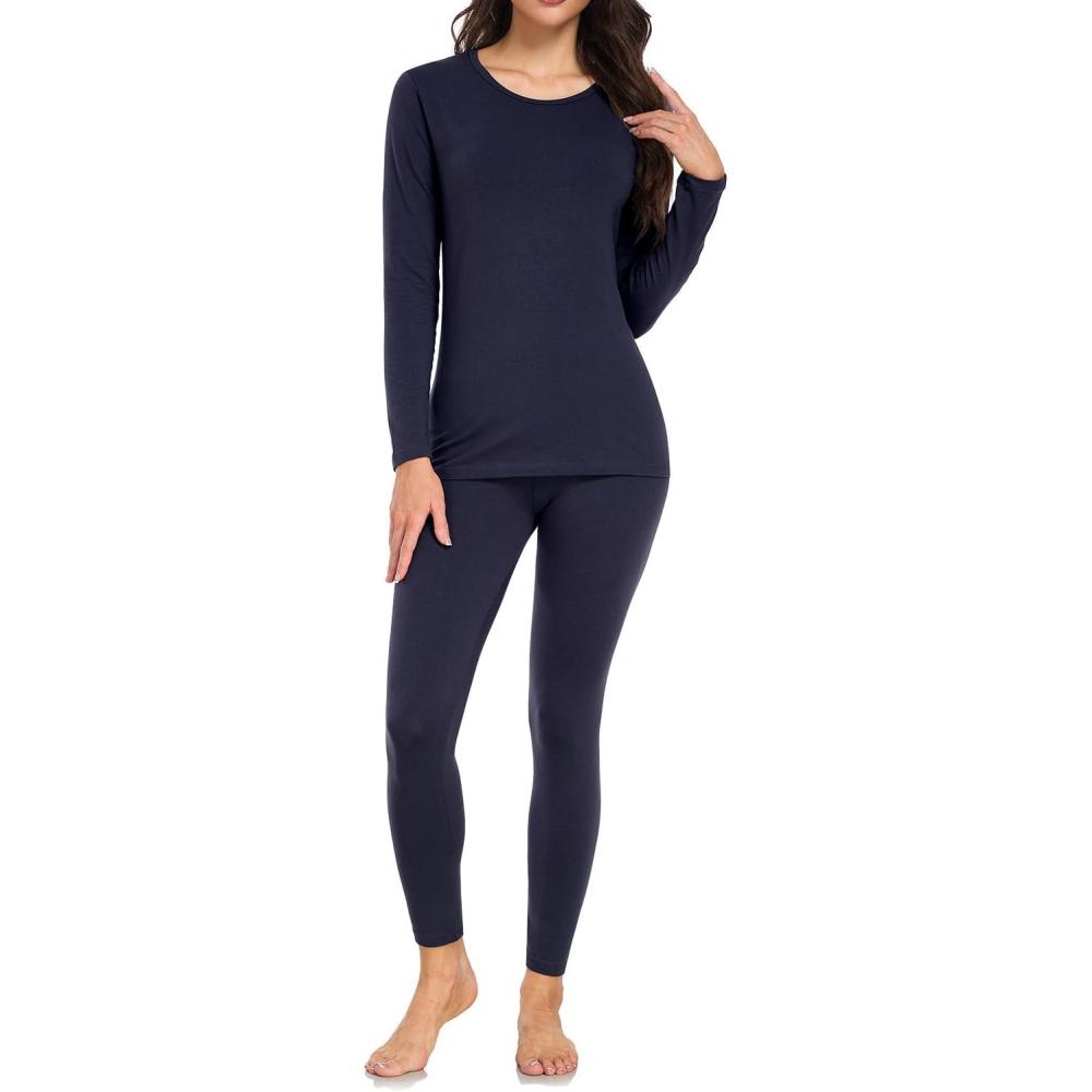 wirarpa Women’s Cotton Thermal Underwear Set Long Johns Base Layer Pajama Set for Women Fall Top Bottom(Navy)