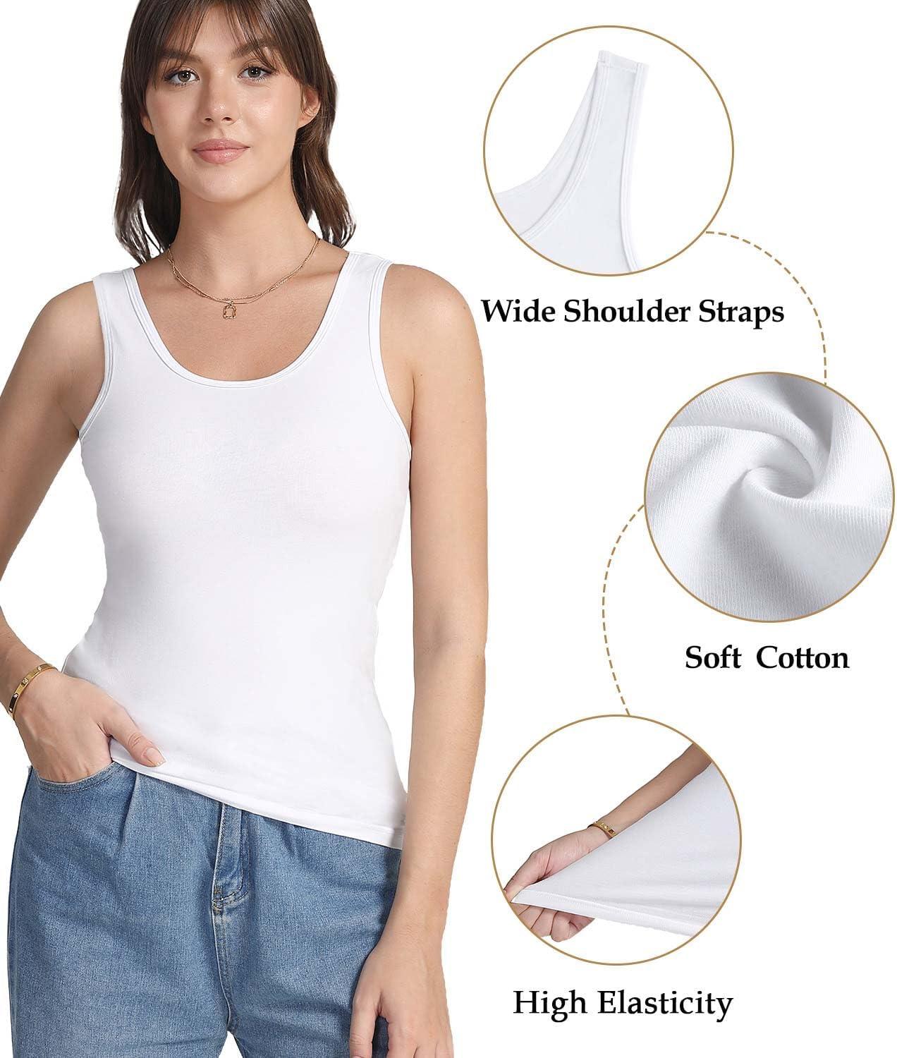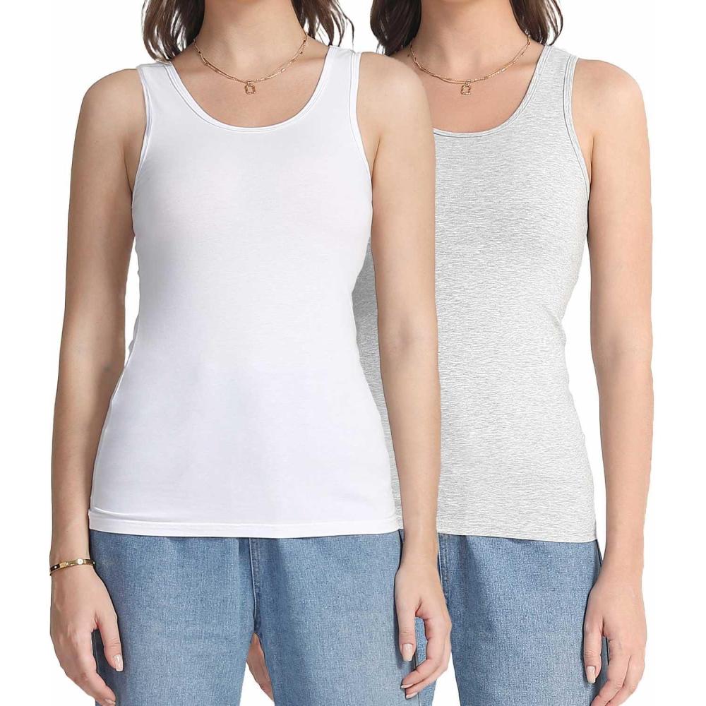 wirarpa Women’s Tank Tops Cotton Undershirts Tanks Top Comfy Camis Base Layer 2-Pack(Grey/White)